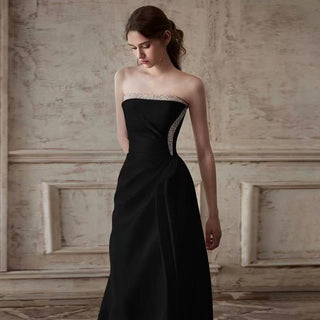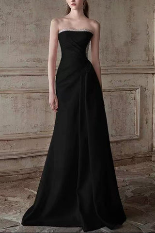 View allMermaid Ruched Strapless Beading Black Prom Dress