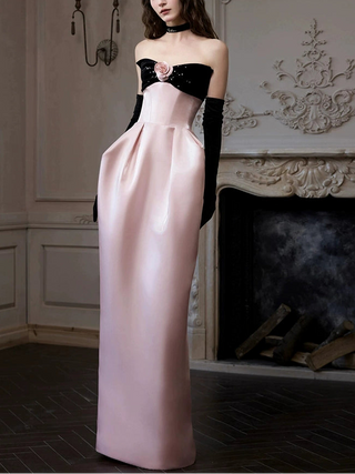 Mermaid Ruched Strapless Beading Pink Prom Dress