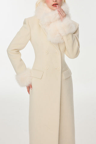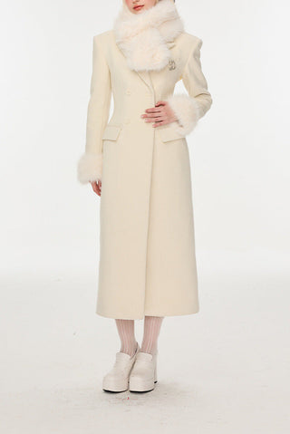 Ivory Slim faux fur mid-length woolen coat