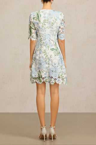 White Flower Lace Embroidery Lace-Up Spaghetti Strap Mini Dress