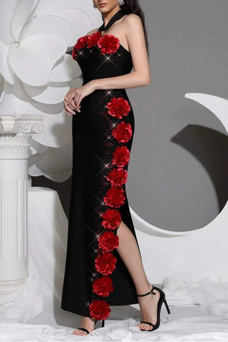Floral Print Elegant Off-shoulder Fitted Waist Maxi Dress
