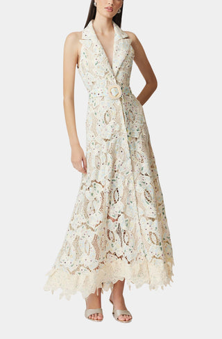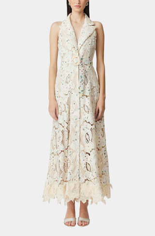 Elegant Plunging Neck Floral Applique Mesh Cami Party Dress