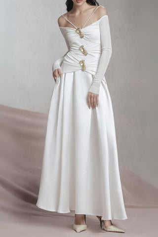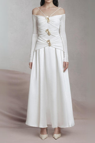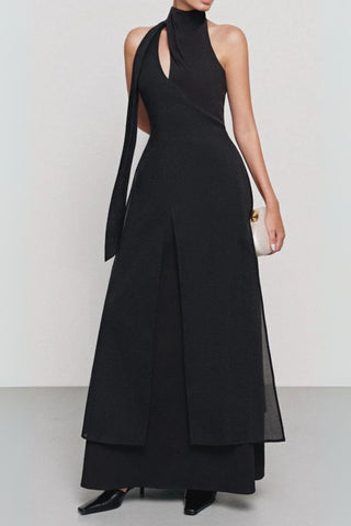 Elegant Plunging Neck Floral Applique Mesh Cami Party Dress