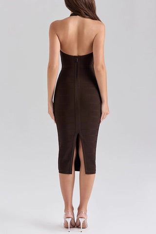 JUNGLE PRINTED MIDI DRESS IN CHOCOLATE