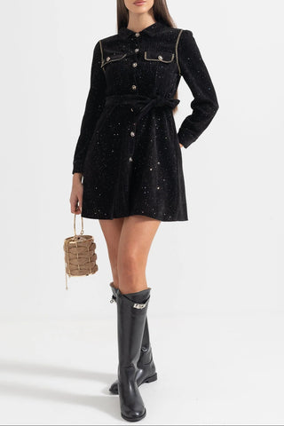 setlla Shimmering Sequin Cutouts Feathers Mini Dress - Silver