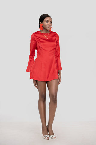 RANDA RED SATIN LONG SLEEVE MINI DRESS